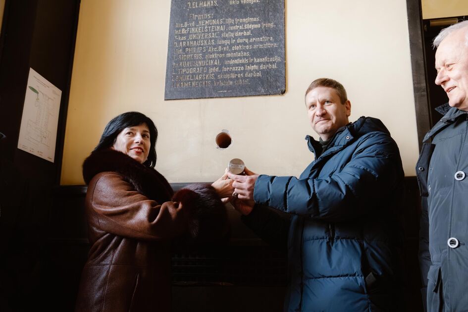 Visi ministrės palinkėjimai ateities kartoms, taip pat USB laikmena su tvarkybos darbų projektu, statybos leidimu ir informacija apie pastato istoriją buvo sudėti į simbolinę laiko kapsulę, kuri įmontuota į Kauno centrinio pašto sieną. Šis simbolinis veiksmas žymi istorinio Kauno pastato tvarkybos darbų pradžią.