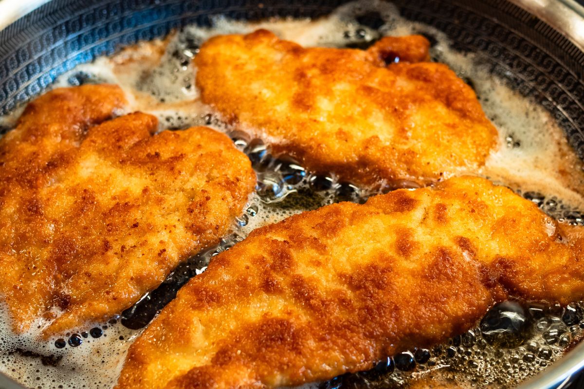 Jei norite geriausio rezultato, visada prieš paniruodami mėsą nusausinkite ją popieriniu rankšluosčiu. Kuo mažiau vandens bus nuo pat pradžių, tuo traškesnė bus plutele ir tuo mažiau aliejaus dėmių rasite ant viryklės ir stalviršio.