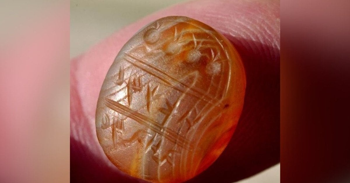 Nedidelis artefaktas pagamintas iš šviesiai rusvo pusbrangio akmens. Jis išgulėjo žemėje beveik 2700 metų. Tai – asmeninis antspaudas, kurio įrašas atveria naują puslapį tiriant to meto administracinę sistemą.